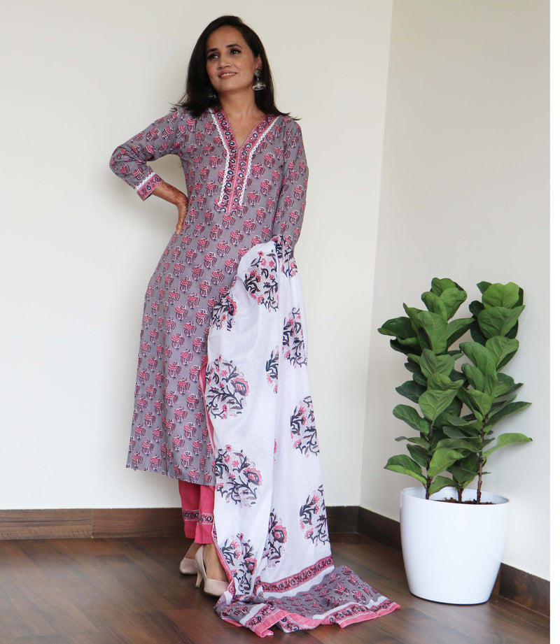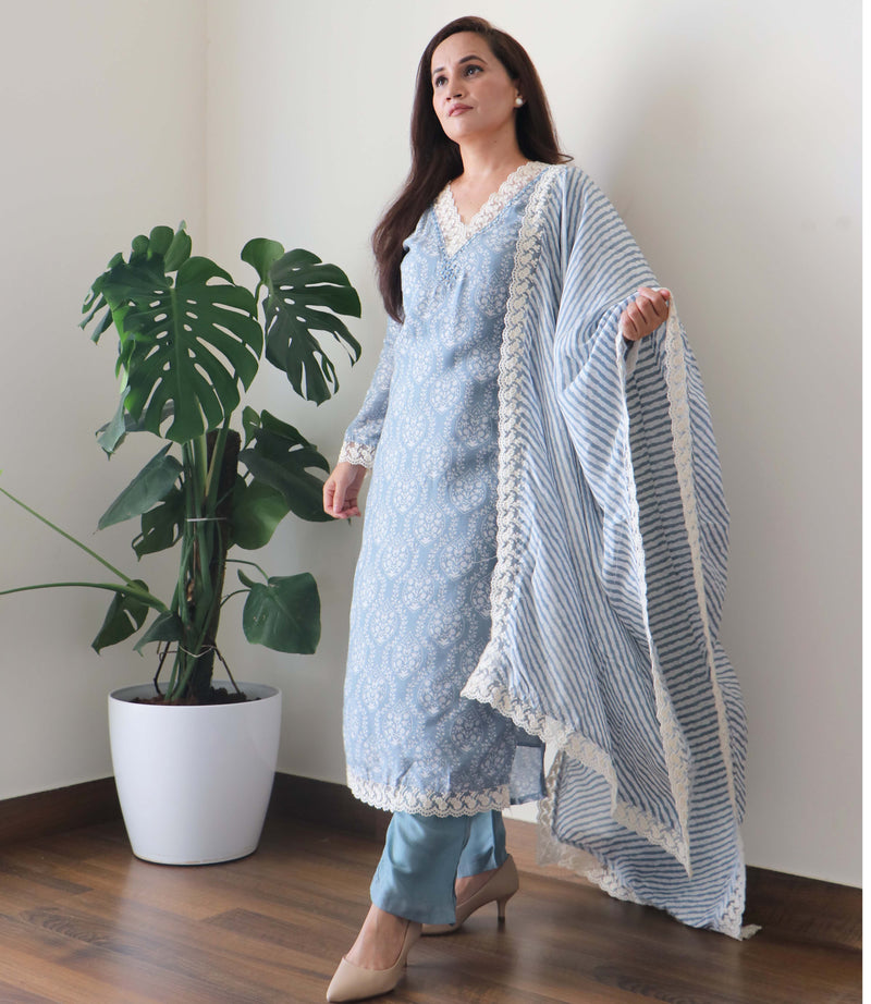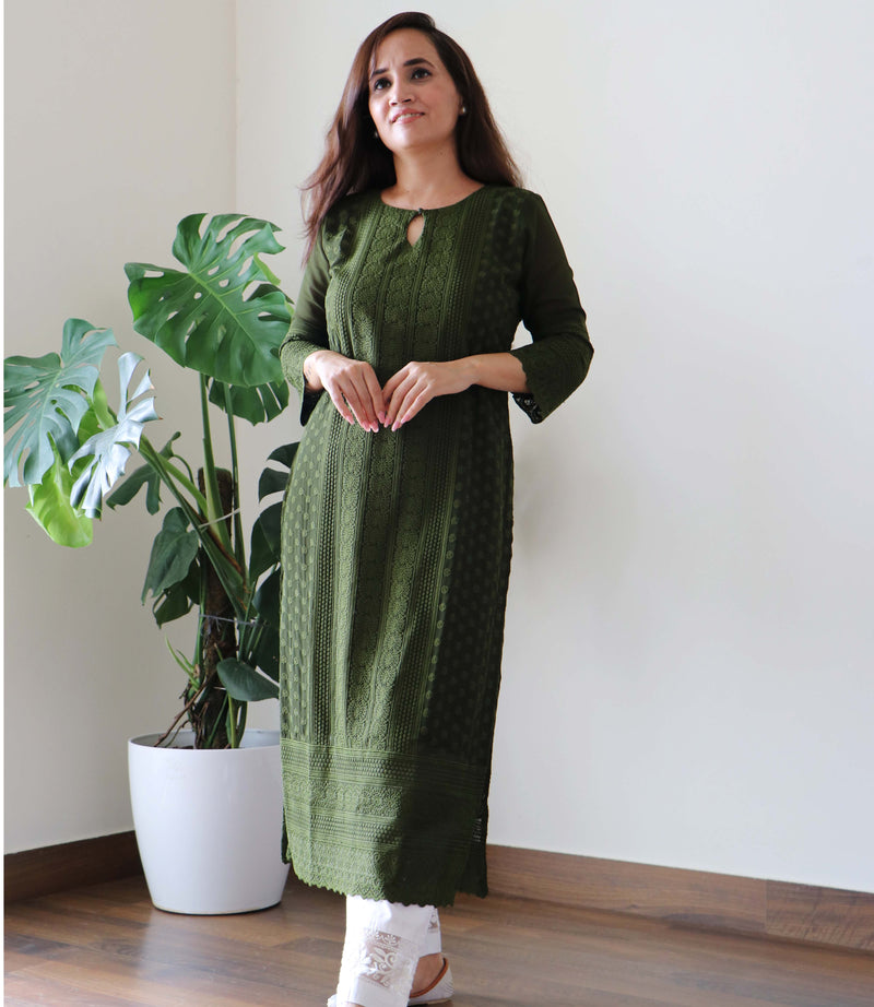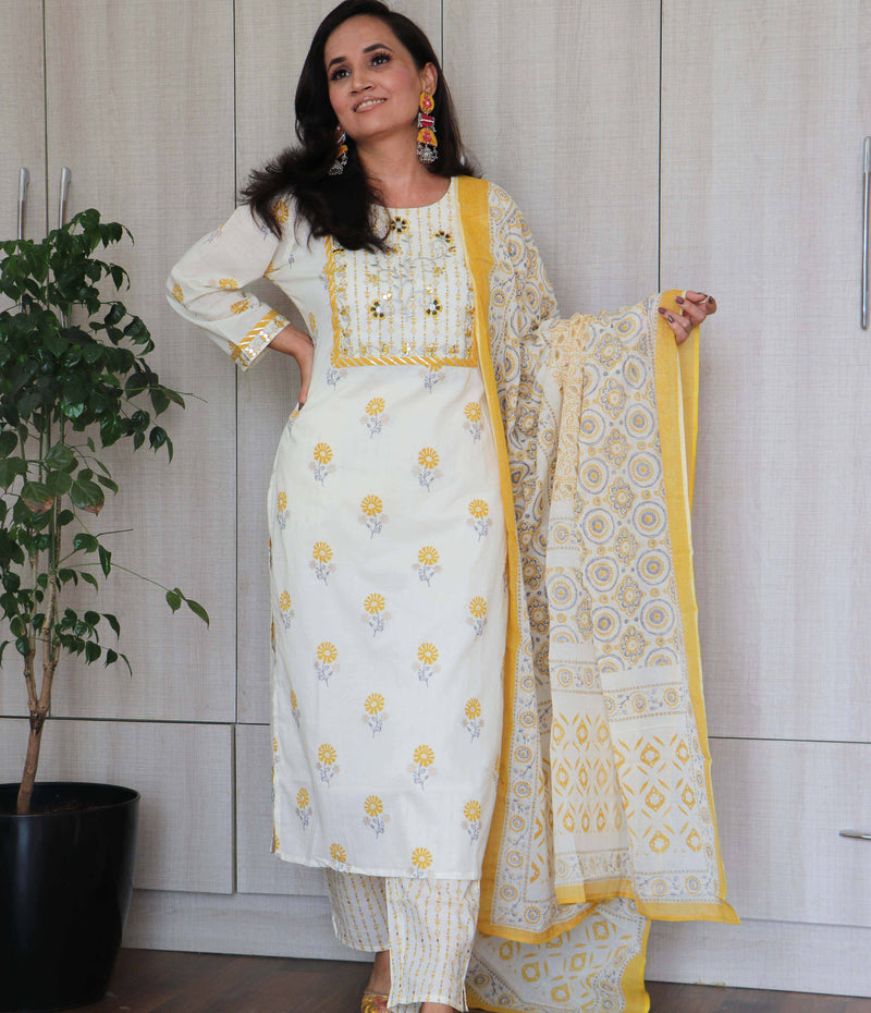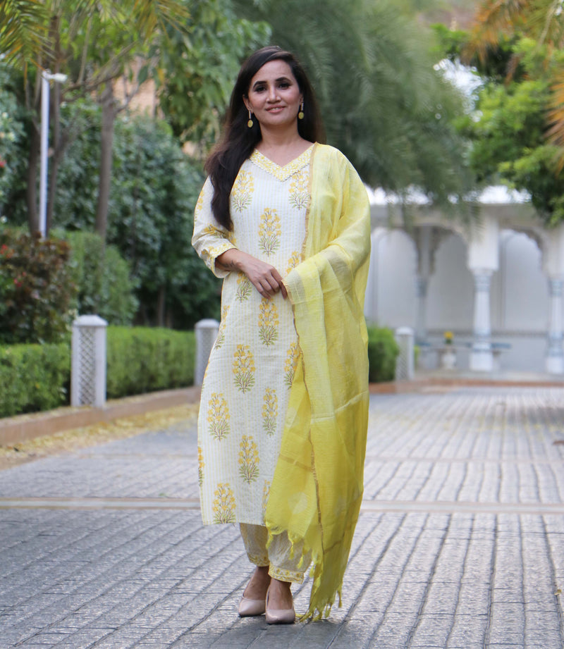 MEHNDI COTTON SET WITH KOTA DORIYA DUPATTA