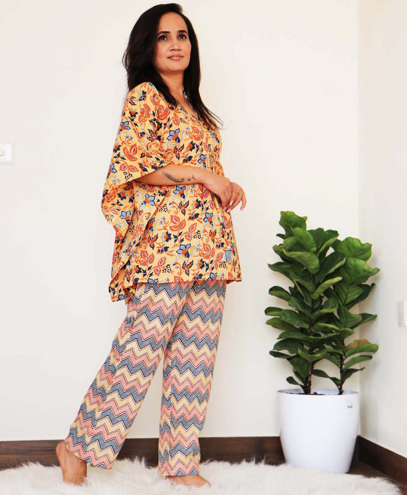 FLORAL PRINTED PYJAMA KAFTAN NIGHTSUIT SET