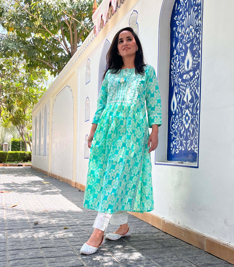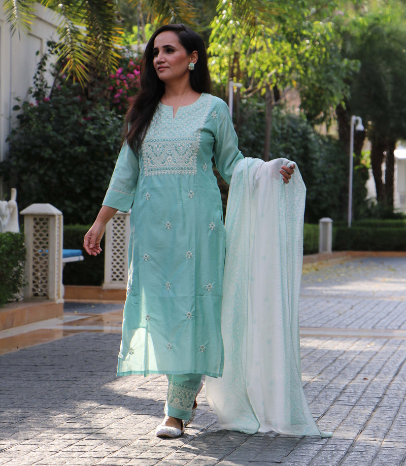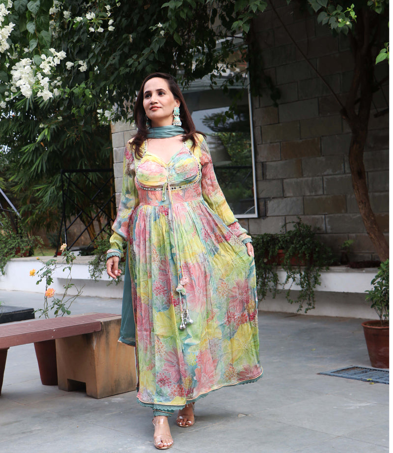 MUL LIME ANARKALI SET