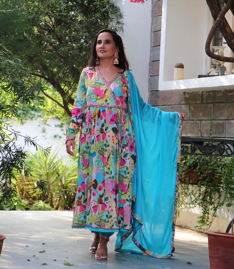 MULTICOLOR FLORAL ANGRAKHA SET