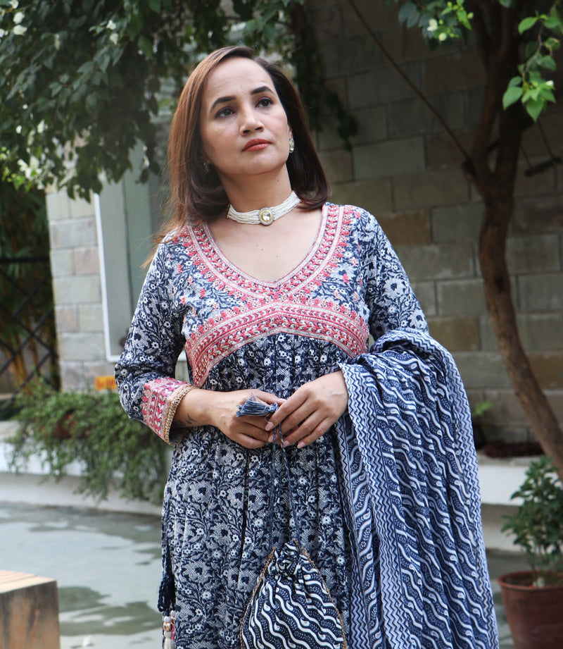 NAVY BLUE EMBROIDERY SUIT