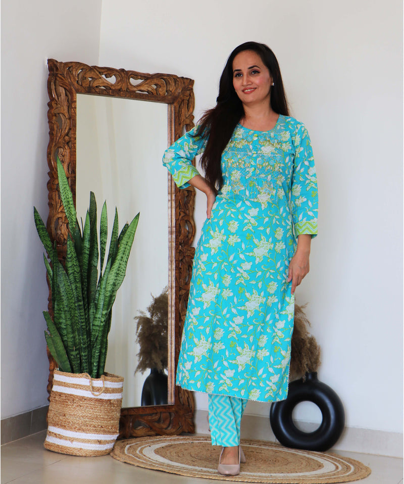 TURQUOISE KURTA PANT SET