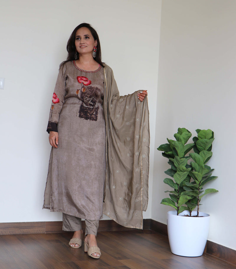 GRAY FLORAL KURTA PANT SET