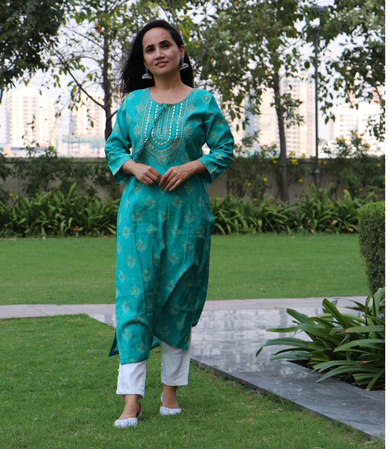 TEAL MUSLIN KURTA